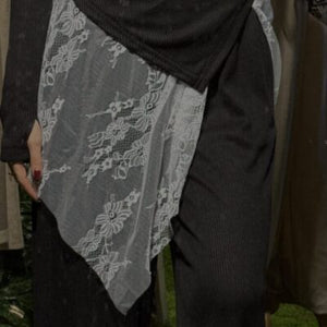 Crafted from soft, delicate lace with an asymmetric cut, it layers beautifully over trousers, jeans, leggings, or dresses — creating a fashion-forward silhouette with zero effort.
