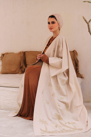 elevate your ramadan wardrobe with our new nakhil kaftan featuring graceful palm-tree embroidery on luxurious linen
